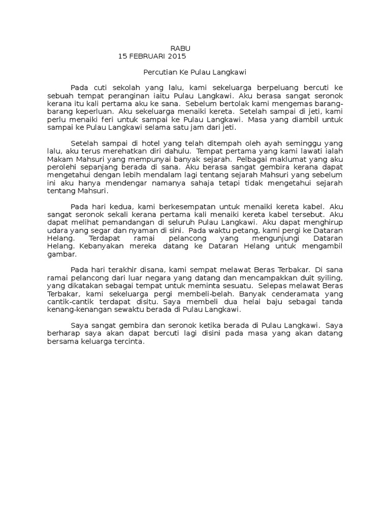 Itu sahaja yang saya boleh katakan. Here are some resumes of keywords to help you find your search the copyright owner is the original owner this blog does not own the copyright of this image or post but this blog summarizes a selection of keywords you are looking for from. Karangan Bercuti Di Pulau Langkawi.